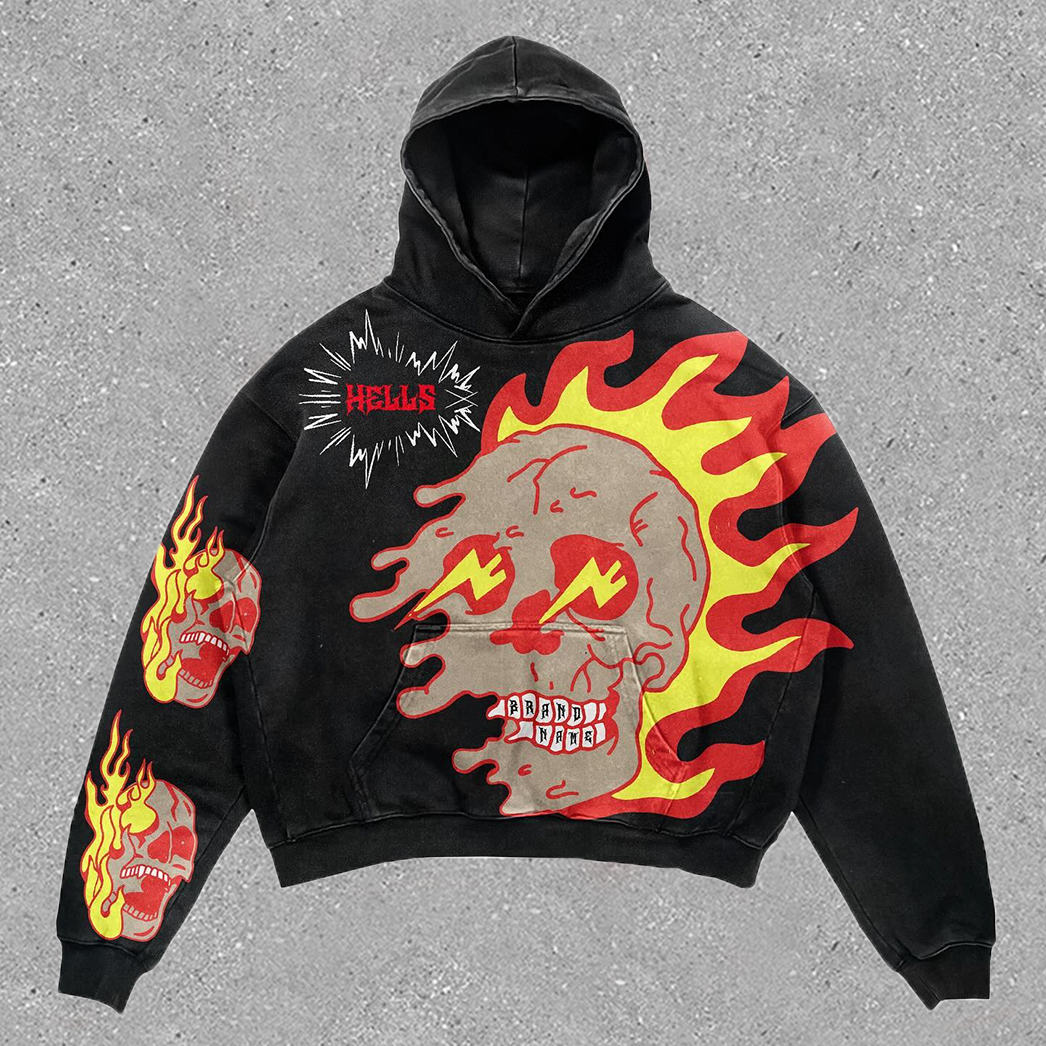 Dio Fear Print Long Sleeve Zipper Applique Embroidered Hoodies