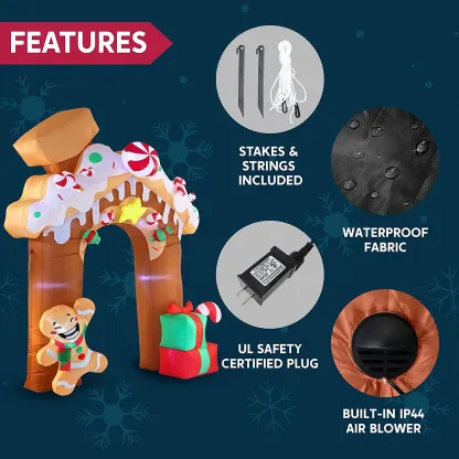 • This Christmas inflatable gingerbread house comes with an extended cord, ground stakes, fastened ropes, built-in sandbags, and a plug with UL certification.