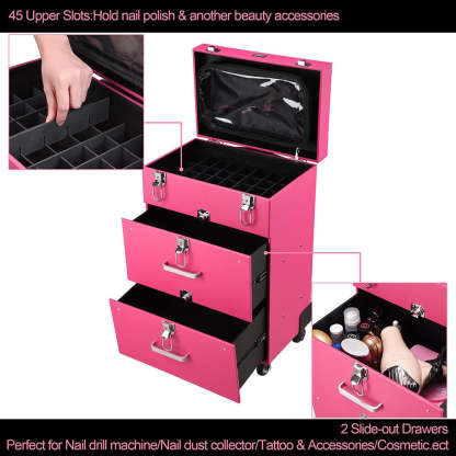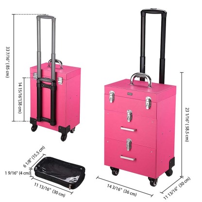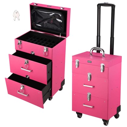 Byootique Pink Rolling Makeup Case with Drawers Nail Artist