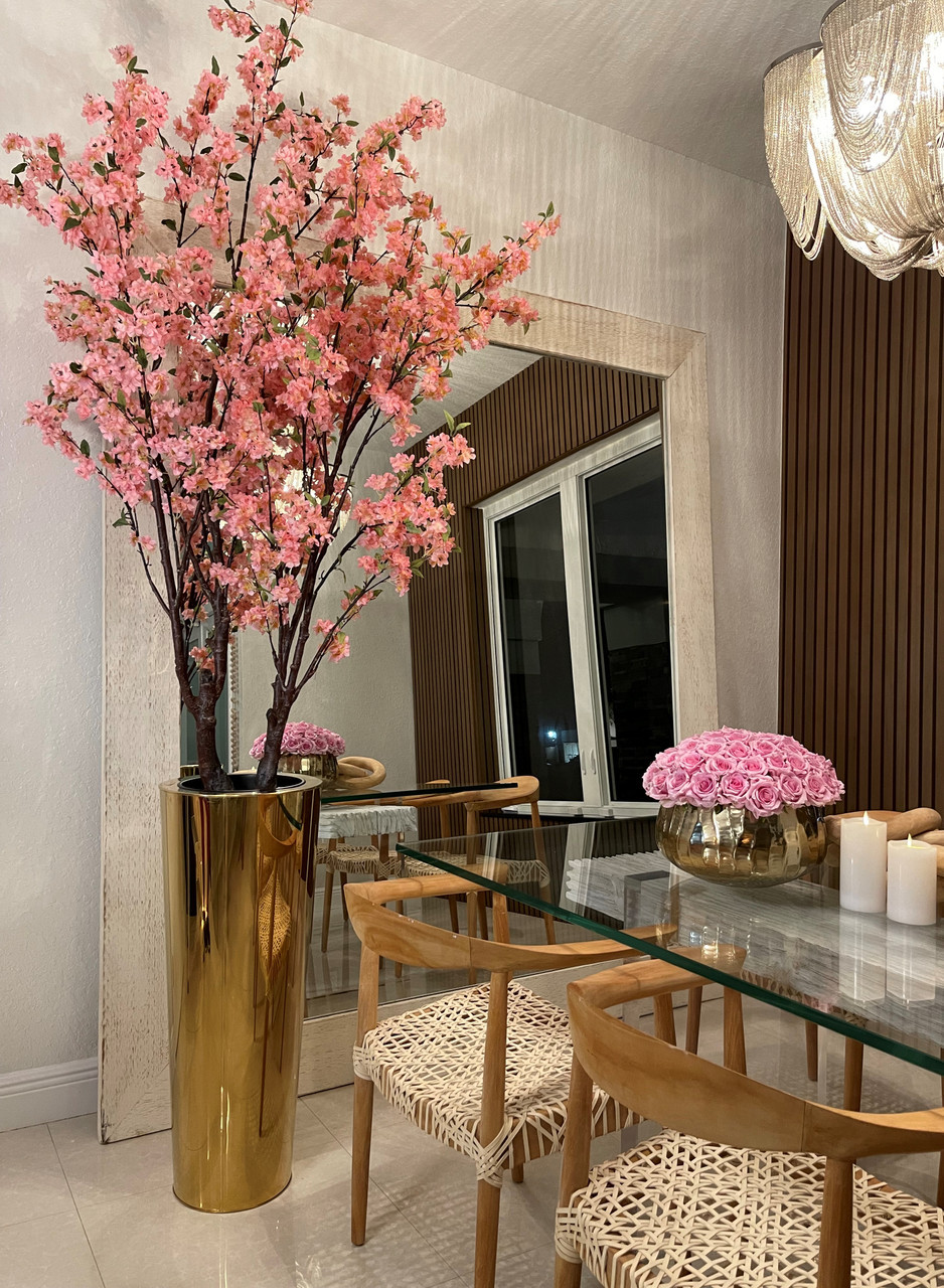 Cherry blossoms are a symbolic flower of the spring, a time of renewal, and the fleeting nature of life. Anchored in our signature Pure Gold collection high gloss stainless steel 34″ cone, these stunning, life like state of the art cherry blossoms will transform any room in your home. Refresh and renew your space with these beauties.