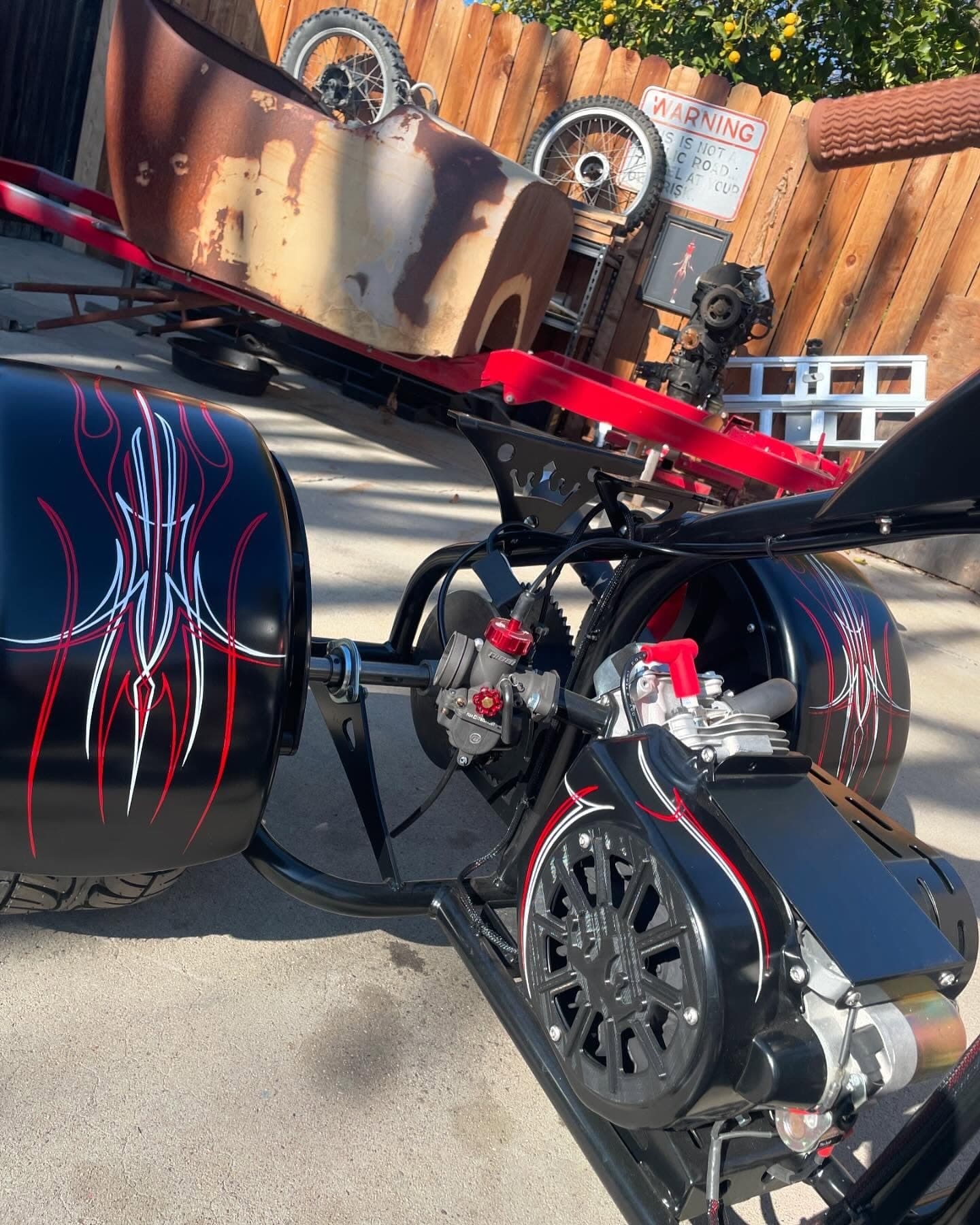 When you order a Hunters trike mini trike (Platinum Edition), you invest in a functional artwork piece. This trike would be a fitting addition to a multi-million dollar showroom, but it would also stand up to hundreds of hours of ripping around campgrounds, parking lots, and fields with your buddies.